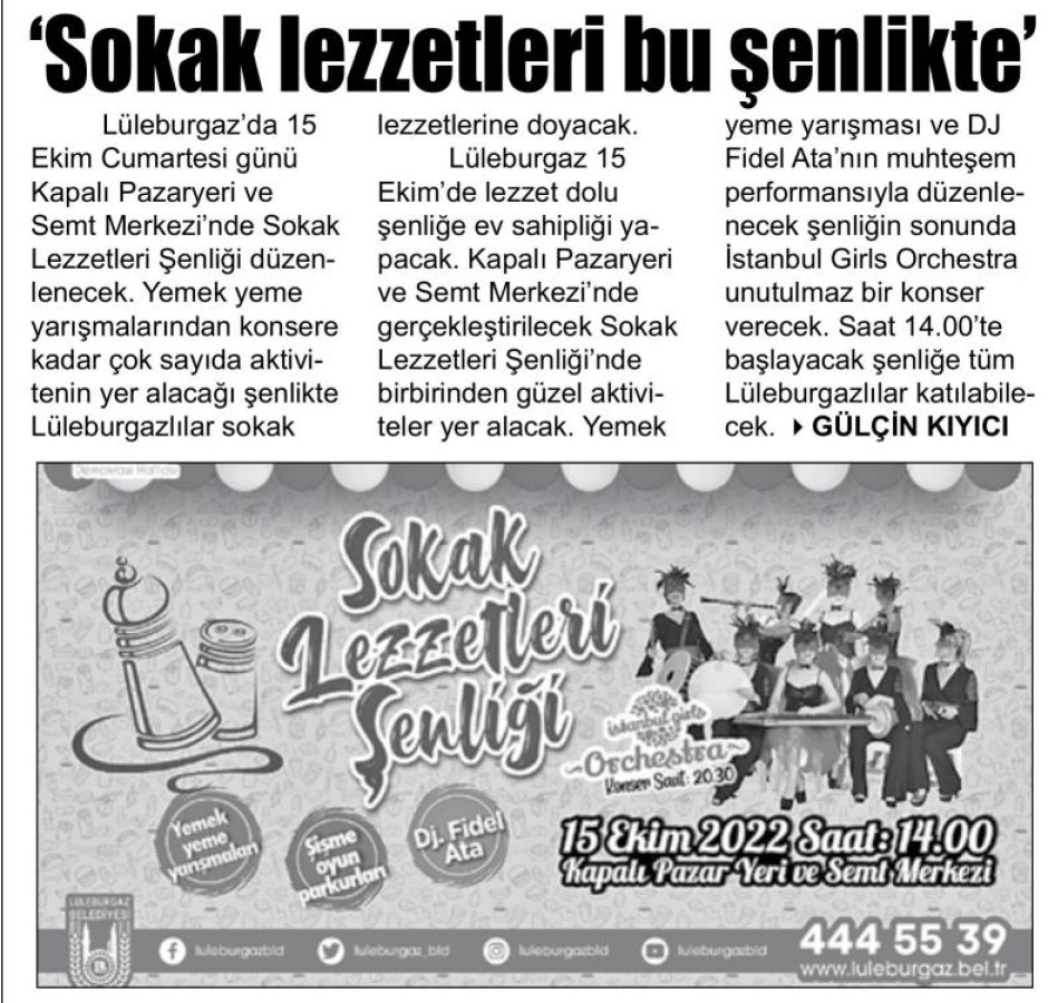E-Mail: info@luleburgaz.bel.tr Belediye Adresi: İstiklal Mahallesi Özgürlük Caddesi No:115 - Lüleburgaz Yıldızları Sanat Akademisi (Lüleburgaz Devlet Hastanesi yanı) 39750 Lüleburgaz/KIRKLARELİ Telefon: 02884171012/ 1073 Fax: 0288 417 4779
